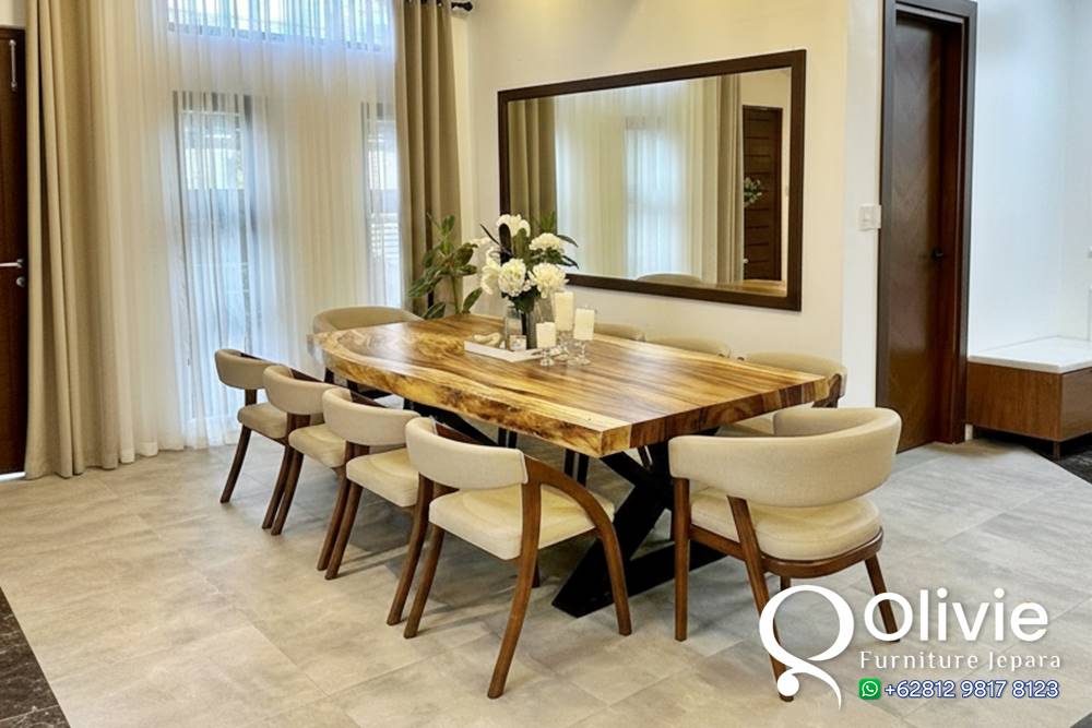 Di Olivie Furniture Jepara, kami menyediakan berbagai jenis meja makan yang dapat dikustomisasi sesuai dengan kebutuhan ruangan Anda. Jadikan momen makan bersama keluarga menjadi lebih berharga dengan furniture yang tidak hanya indah dipandang, tetapi juga nyaman digunakan.