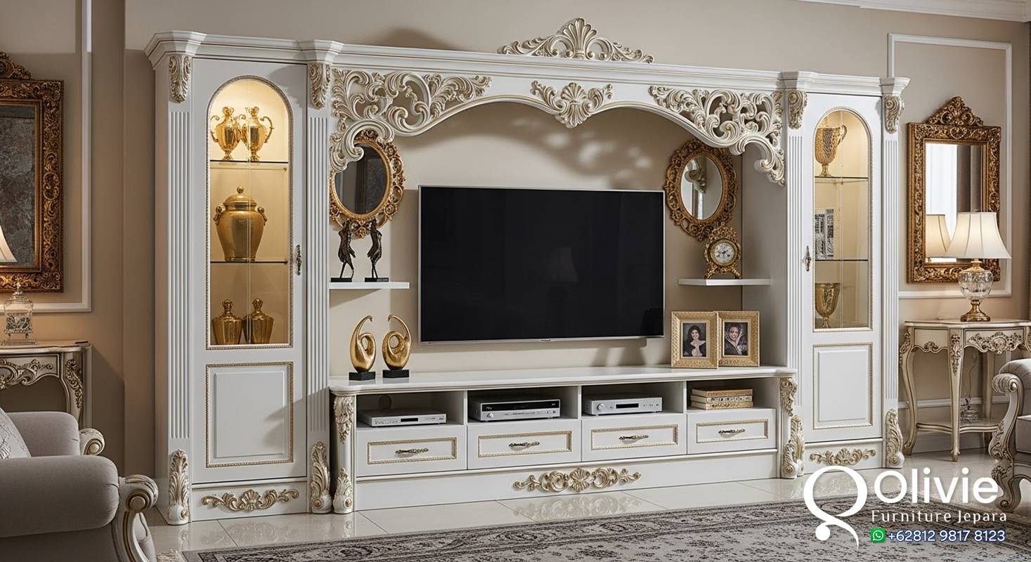 Bufet TV Besar Lemari Rak Klasik Mewah Jepara