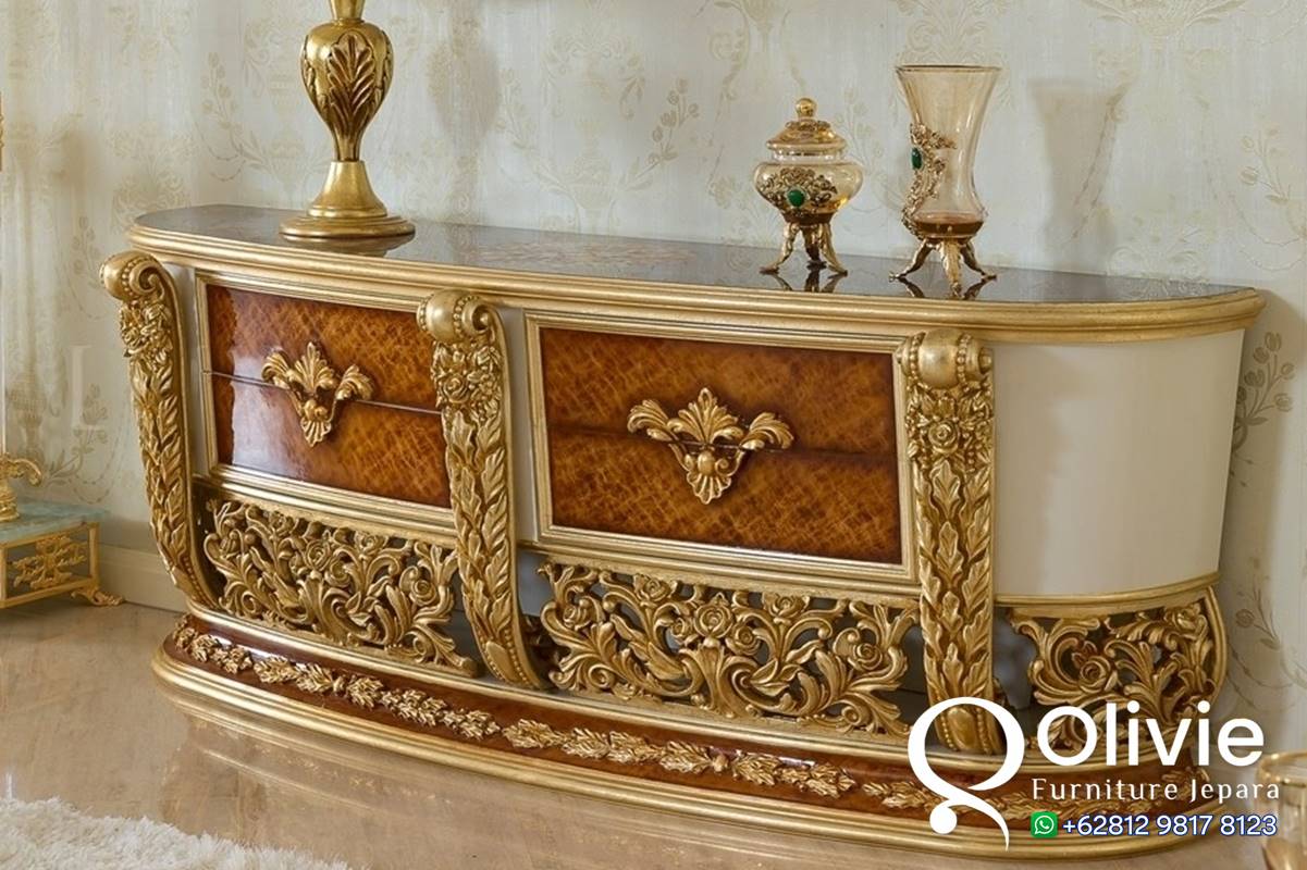 Bufet Ukir Mewah Klasik Ukir Jepara, Anda dapat menciptakan ruang yang rapi dan teratur tanpa mengorbankan gaya dan keanggunan. Kesempurnaan untuk mengakomodasi kebutuhan modern Anda sambil mempertahankan pesona klasik yang tak lekang oleh waktu. Dibuat dengan perhatian terhadap kualitas dan desain, kami menawarkan Set Bufet Ukir Jepara dengan kombinasi yang sempurna antara keindahan estetika dan kepraktisan. Tidak hanya sebagai tempat untuk meletakkan televisi dan perangkat elektronik, tetapi juga sebagai penyimpanan yang elegan untuk koleksi media dan barang-barang lainnya.