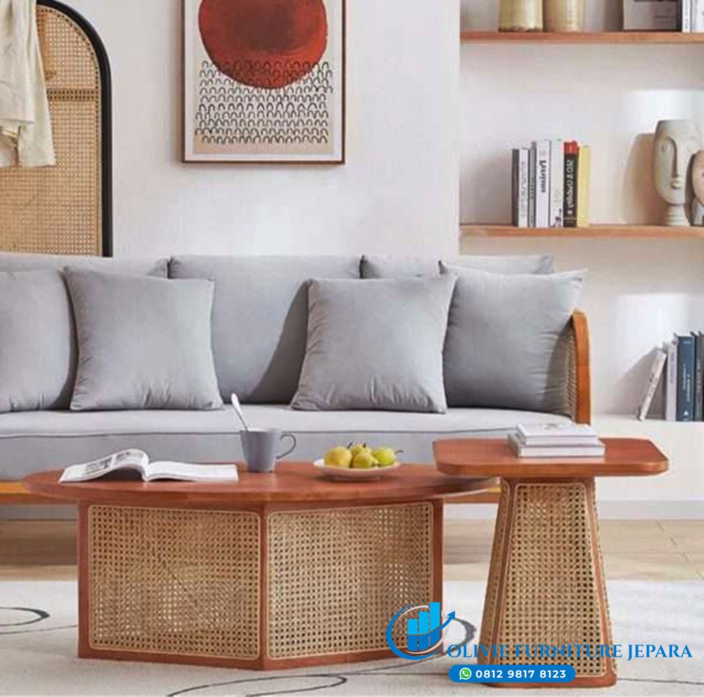 Set Meja Tamu Kayu Jati Kombinasi Rotan