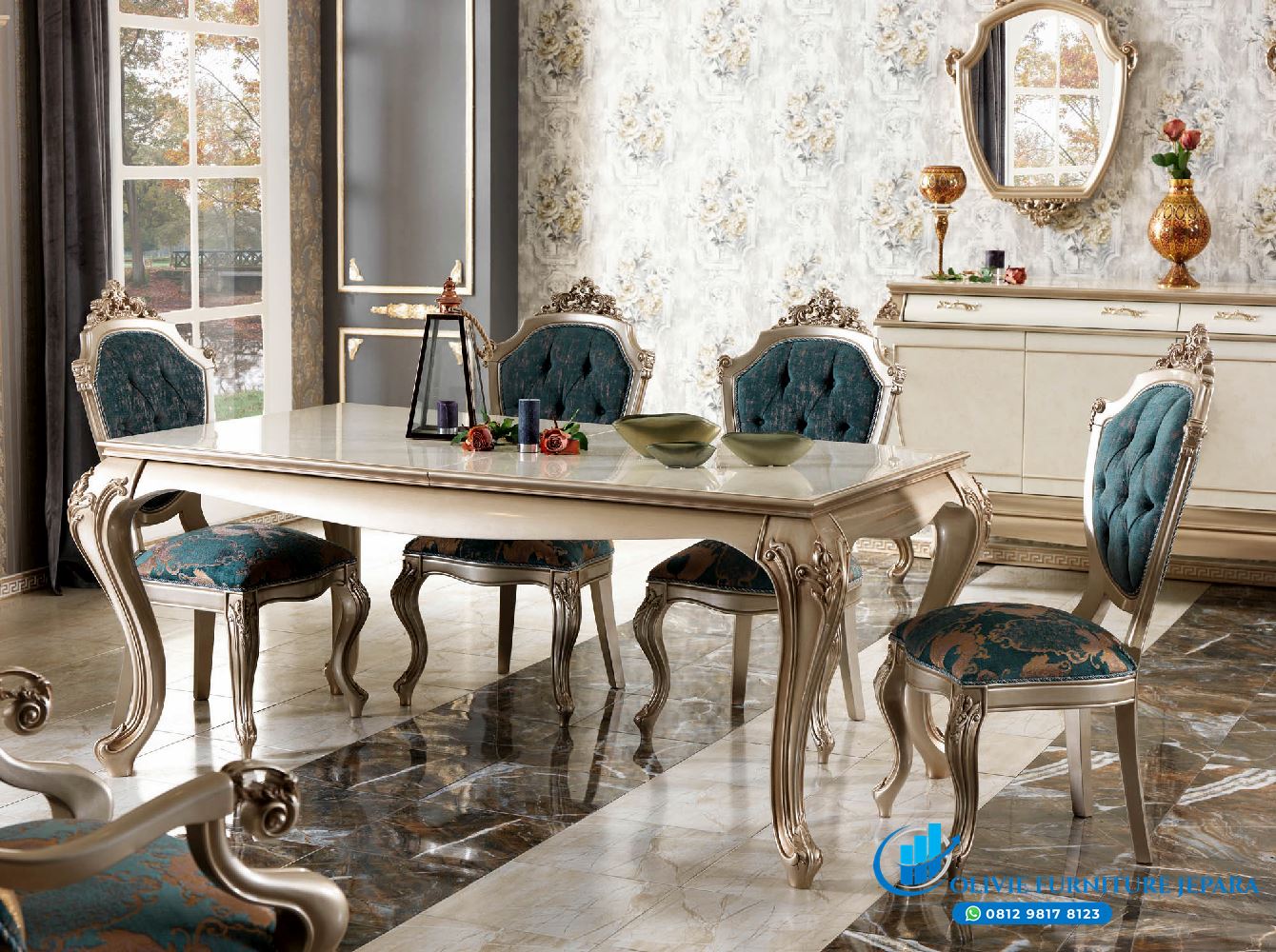 Olivie Furniture Jepara Jual Meja Makan Klasik 6 Kursi Jok Bludru Jepara