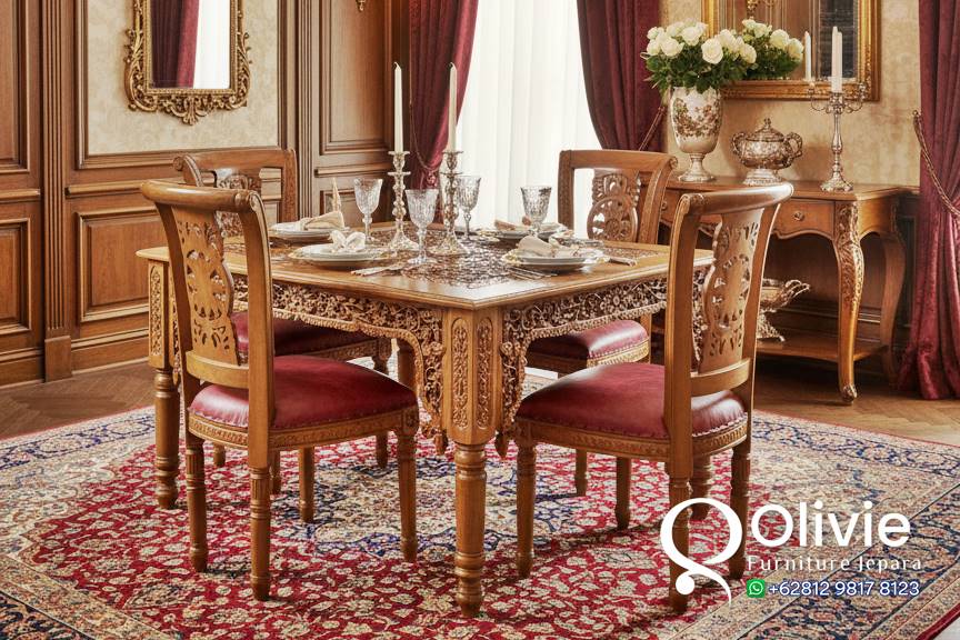 DiningĀ Set Meja Makan 4 Kursi Klasik Mewah Ukir Jati Jepara