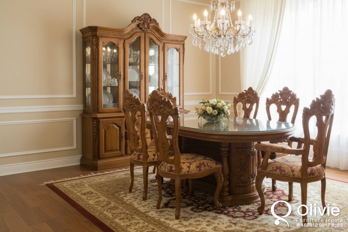 Meja Makan Jati Klasik 8 Kursi Ukir Jepara