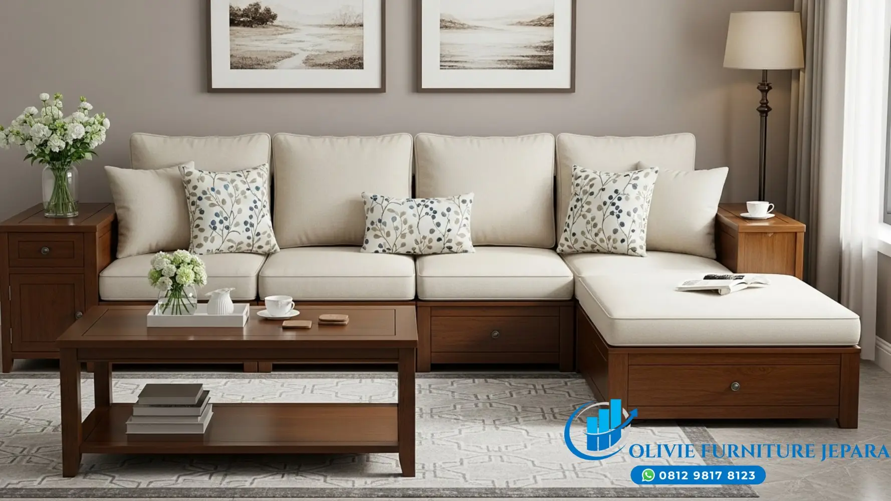 Cara Pemesanan Sofa Sudut Jati Minimalis Jepara Olivie Living :